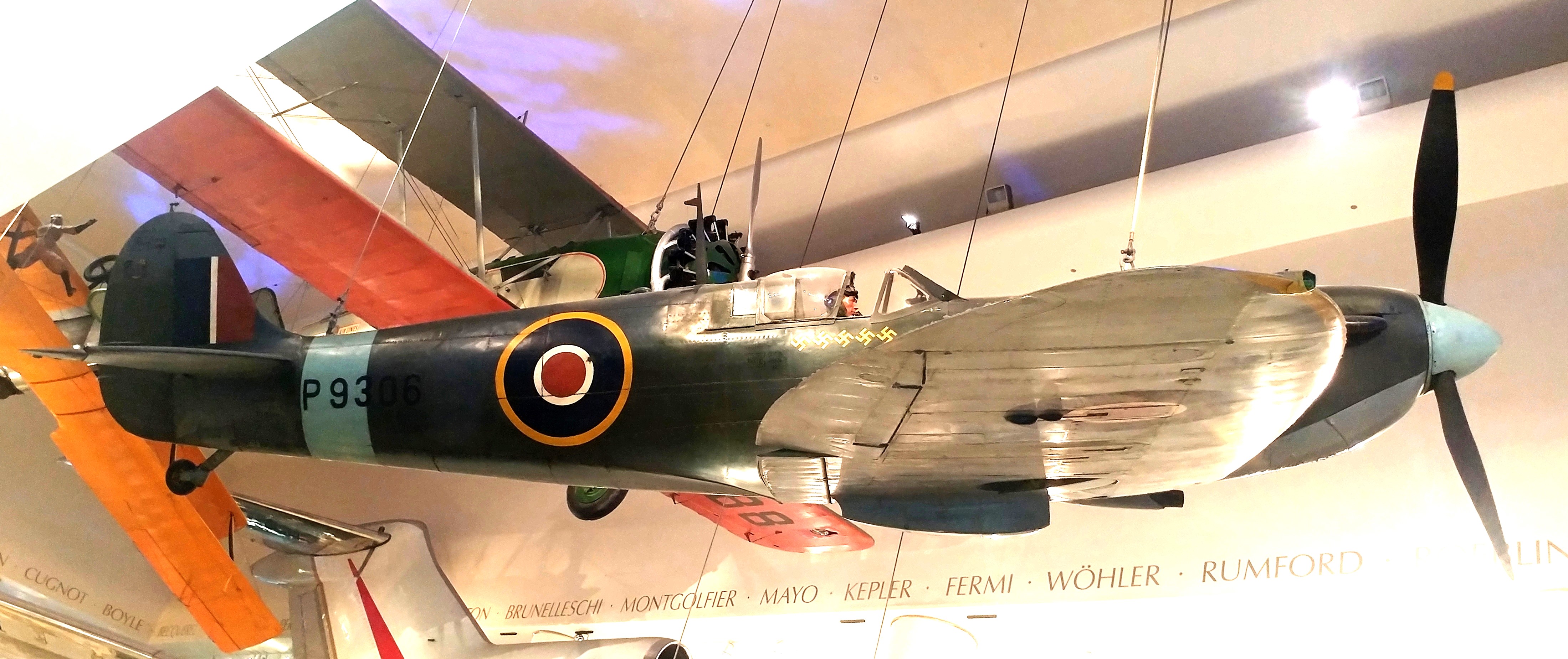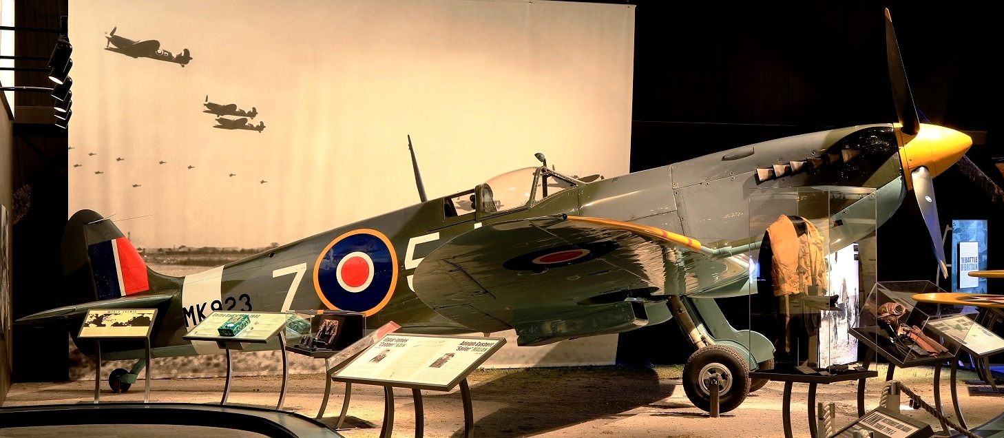 Supermarine Spitfire F Mk. Ia (Serial No. P9306). This Spitfire is on display at the Museum of Science and Industry in Chicago, Illinois. It is a Battle of Britain veteran that flew with No. 74 Squadron RAF.