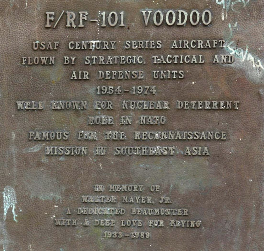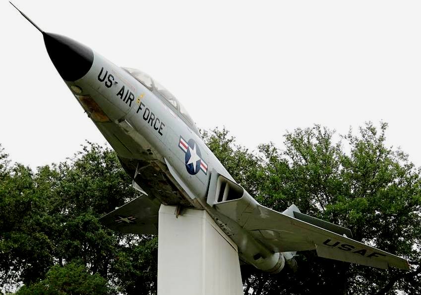 McDonnell F-101B Voodoo (Serial No. 59-0430), mounted on a pylon. Babe Didrikson Zaharious Memorial Park, Interstate Hwy 10.