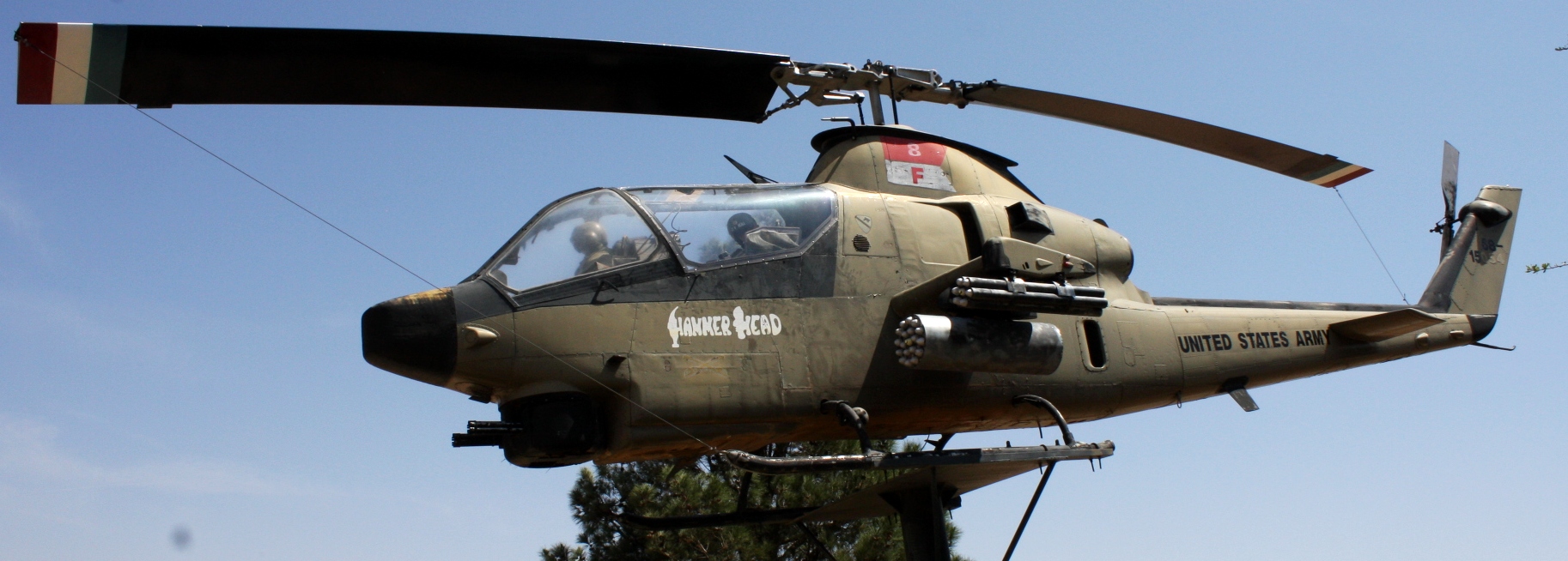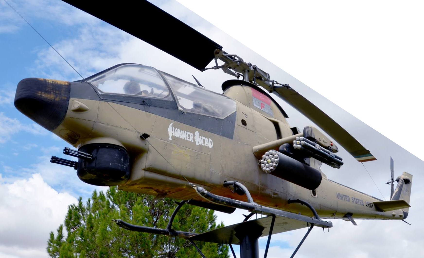 Bell AH-1 Cobra helicopter (Serial No. 67-15470), mounted on a pylon.