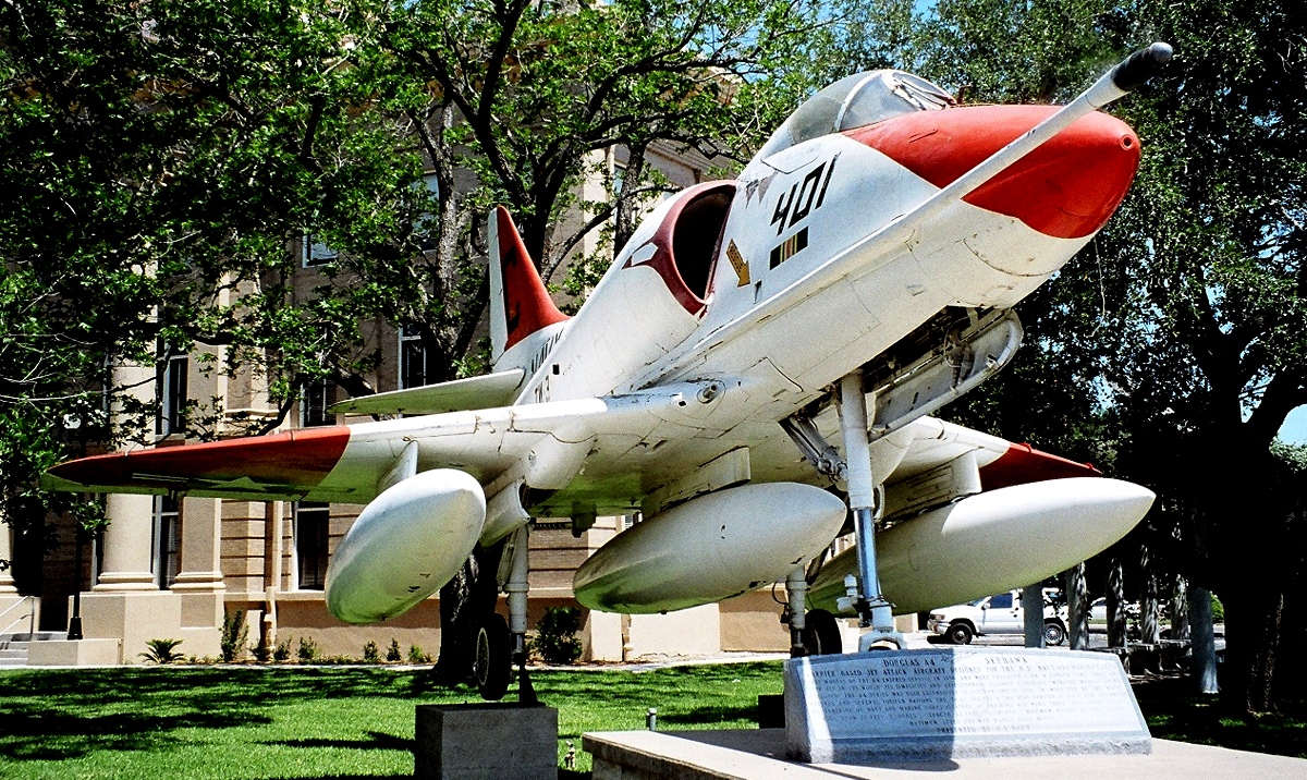 McDonnell Douglas TA-4J Skyhawk (BuNo. 142717), 401, TW-3. This aircraft stands in a park near the Courthouse, 105 W Corpus Christi.