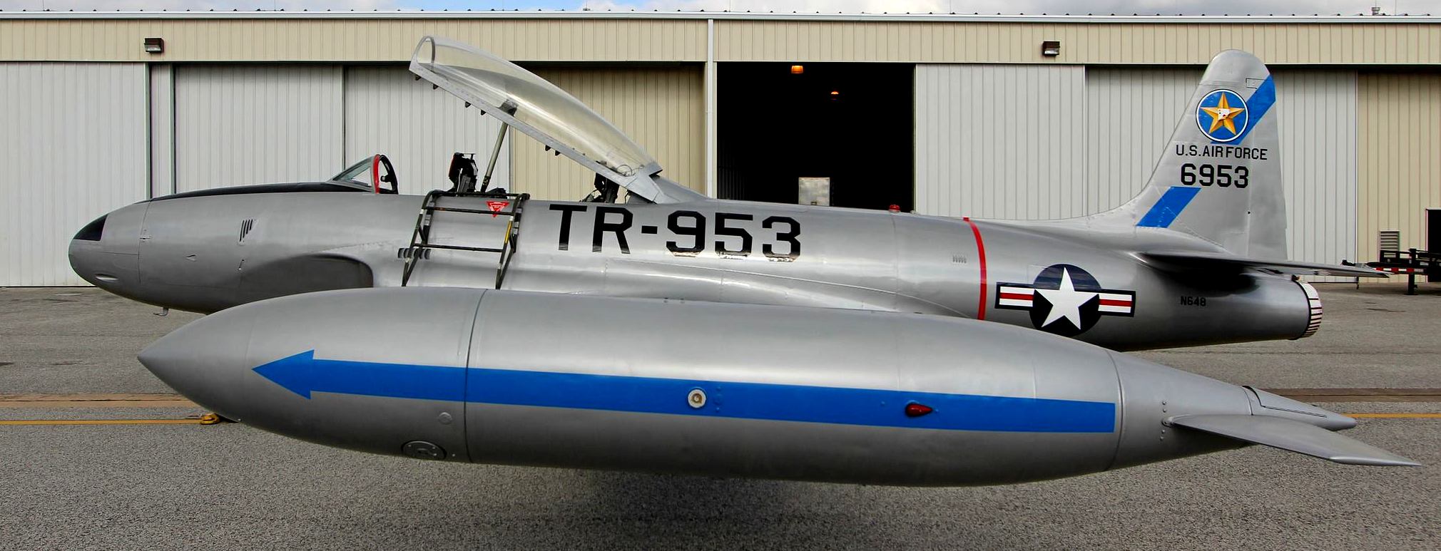 Lockheed T-33 Shooting Star (Serial No. 51-6656), mounted on a pylon.