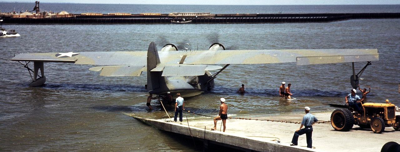 U.S. Navy Consilidated PBY Catalina flying boats used to train aviaton cadets at Naval Air Station Corpus Christi, Texas (USA), in August 1942.