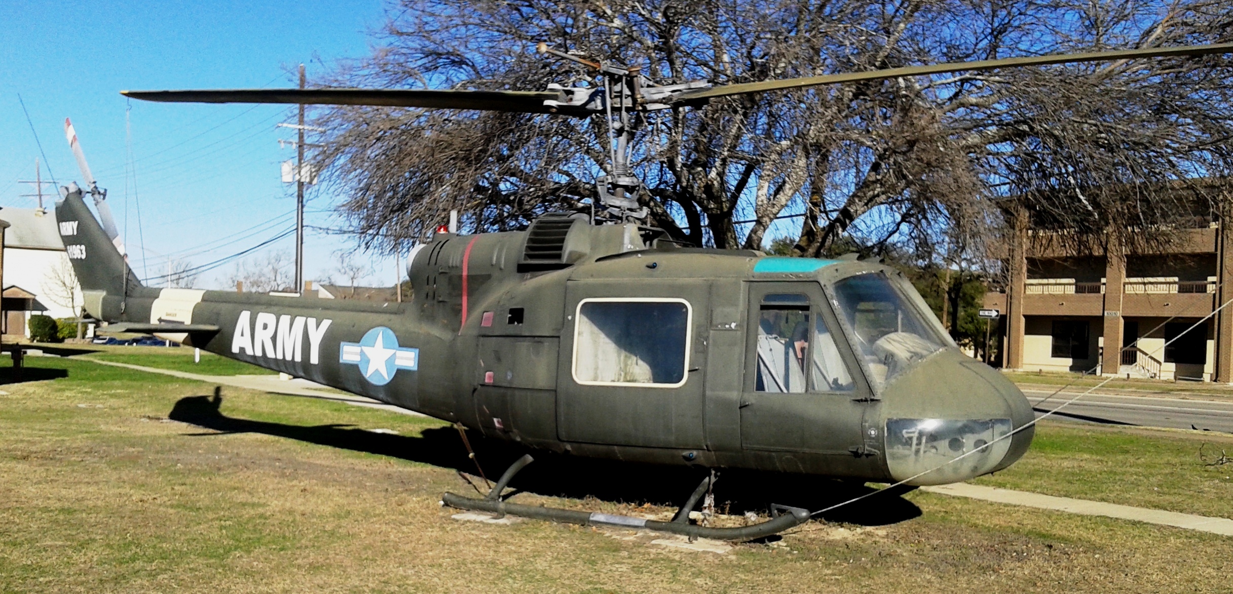 Bell UH-1H Iroquois Helicopter (Serial No. 64-13856), placed in front of Darnall Hospital.