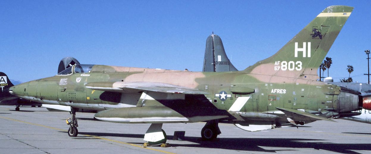 Republic F-105B Thunderchief (Serial No. 57-5803) as it appeared in service with the 466th TFS at Hill AFB, ca 1980.