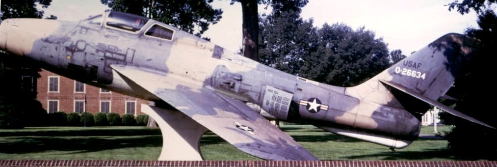 Republic F-84F Thunderstreak (Serial No. 52-6634), mounted on a pylon.