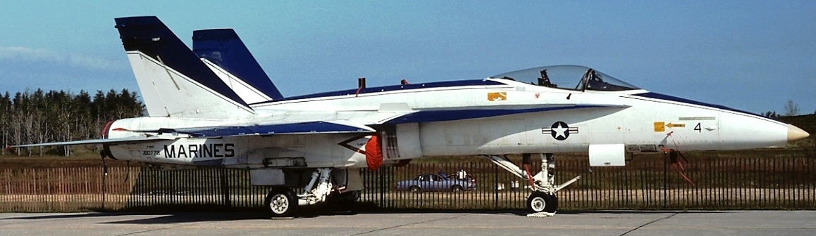 These aircraft are similar to the NATC Hornet shown below that was used in the flight test program for the F-18.  This aircraft was transferred to the RCAF for use as a training aid.  It has since been repainted in RCAF colours (Serial No. 188778), and is now stored at CFB Trenton, Ontario.