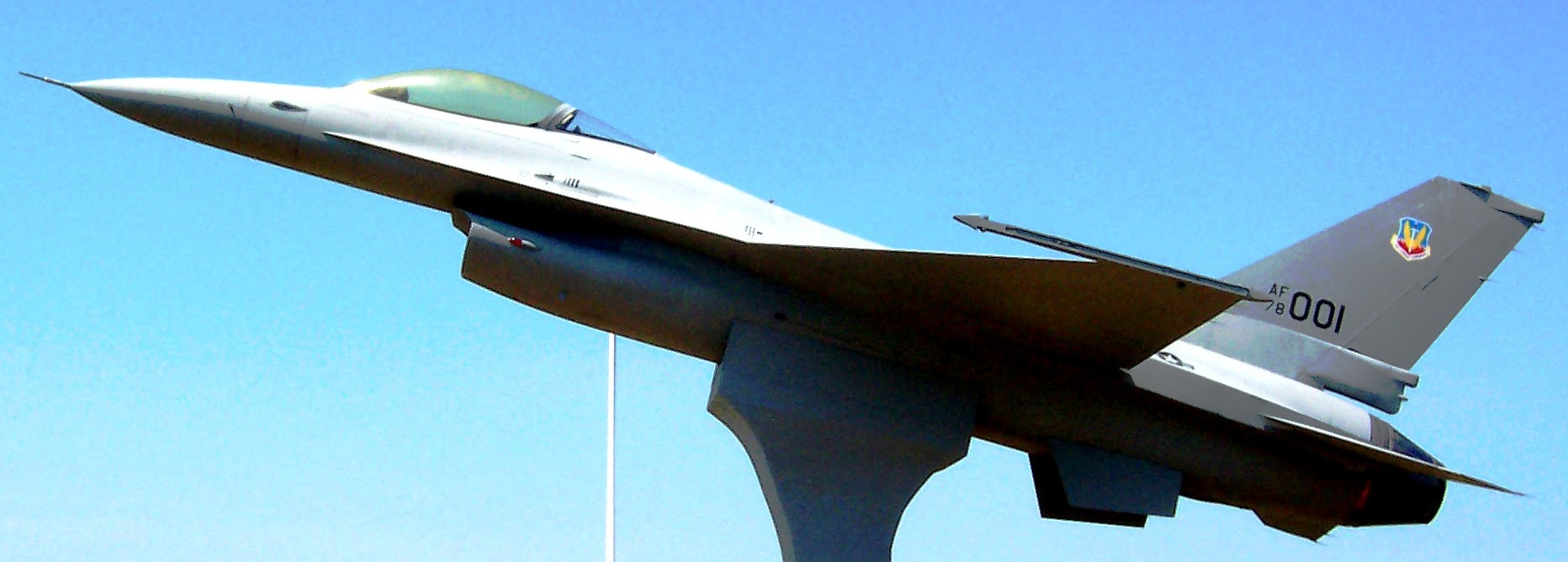 General Dynamics F-16A Fighting Falcon (Serial No. 78-0001), LF, C/N 61-7, mounted on a pylon.