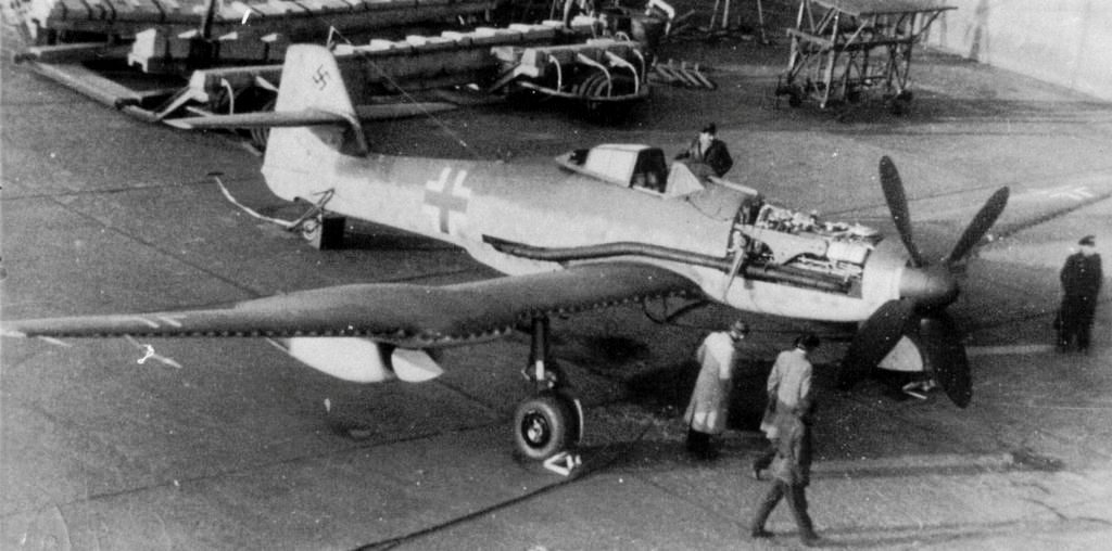 Ta 152H-0/R-11 (Wk. Nr. 1500010), coded CW+CJ, “Green 4”, JG301, USA 11, Reg. No. 32, T2/FE-112, with the NASM.  This Ta 152 is the only existing example of this fighter in the world today.  The British recovered “Green 4” in Aalborg, Denmark, at the end of hostilities.  They turned the airplane over to “Watson’s Whizzer’s, an American unit charged with collecting Luftwaffe aircraft for further study.  Lt Harold McIntosh flew ‘020 to Melun, France, where it was loaded aboard the British aircraft carrier HMS Reaper and shipped Newark Army Airfield, New Jersey.  From Newark, McIntosh flew this Ta 152 to Freeman Field, Indiana.  The airplane was later transferred to Wright Field, Ohio, to undergo extensive flight testing as Foreign Equipment number FE-112 (later changed to T2-112).  After testing, the Army stored the aircraft and then turned it over to the National Air Museum in 1960.