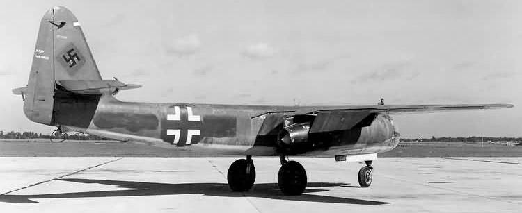 Arado Ar 234B-2 Blitz (Lightning), (Wk Nr 140312), USAAF FE-1010, shortly after it was brought to the USA in 1945.  (USAAF Photos)