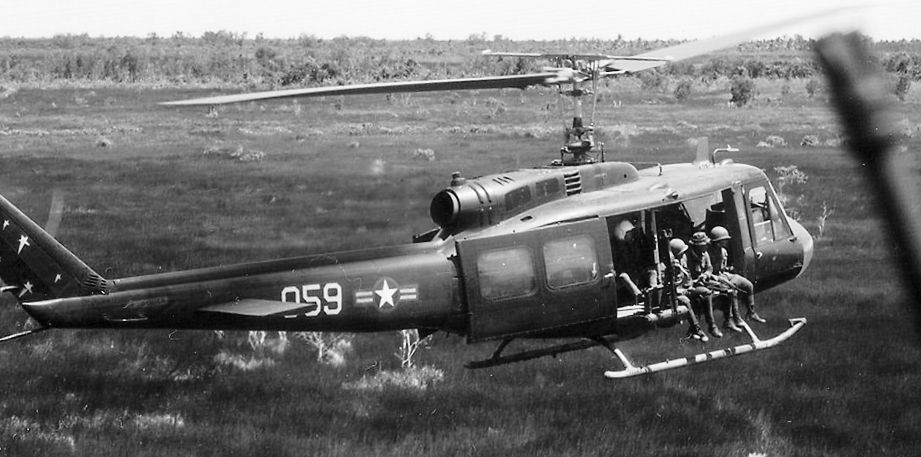Bell UH-1H, Vietnamese Air Force (VNAF), ands during a combat mission in Southeast Asia in 1970.