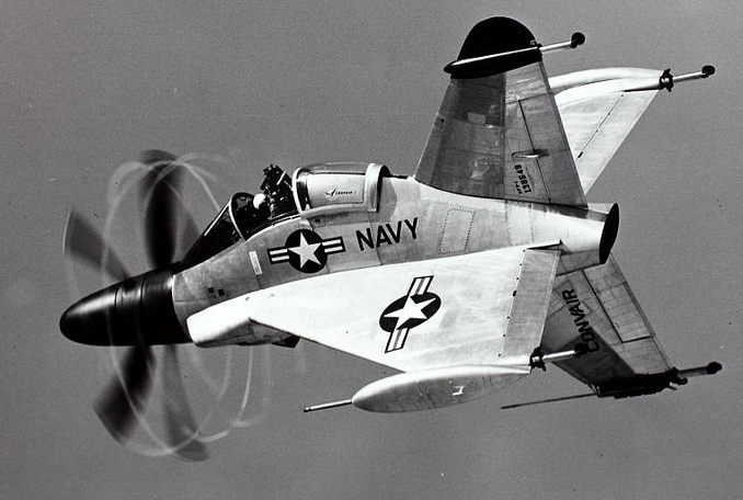Curtiss-Wright X-100 (Serial No. 1), Reg. No. N853.  1st transition to tilt-propeller-driven a/c, April 1960.