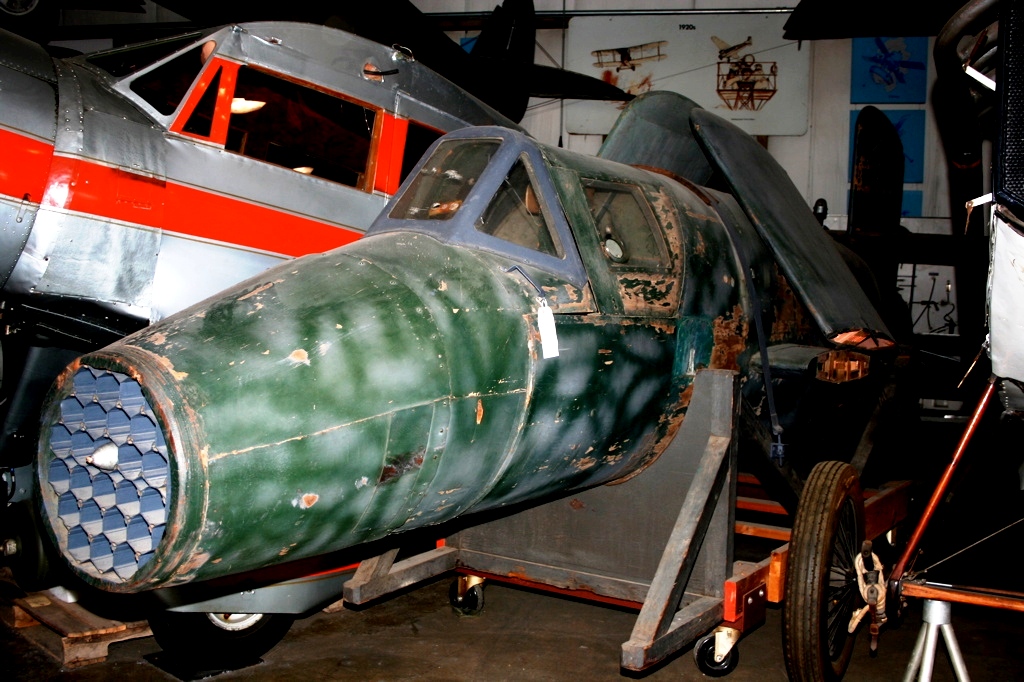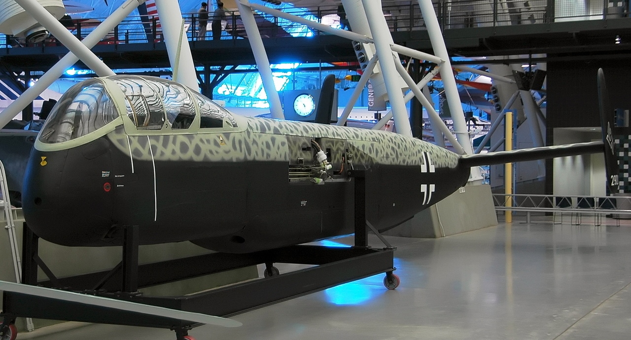 Bachem Ba 349B-1 Natter (Snake).  T2/FE-1.  This is the only surviving original Ba 349, likely captured by US forces at St. Leonhard im Pitztal, Austria in May 1945.  This machine is of the experimental type as launched from the steel tower and is painted to look like an M17.  It is currently in storage awaiting restoration.