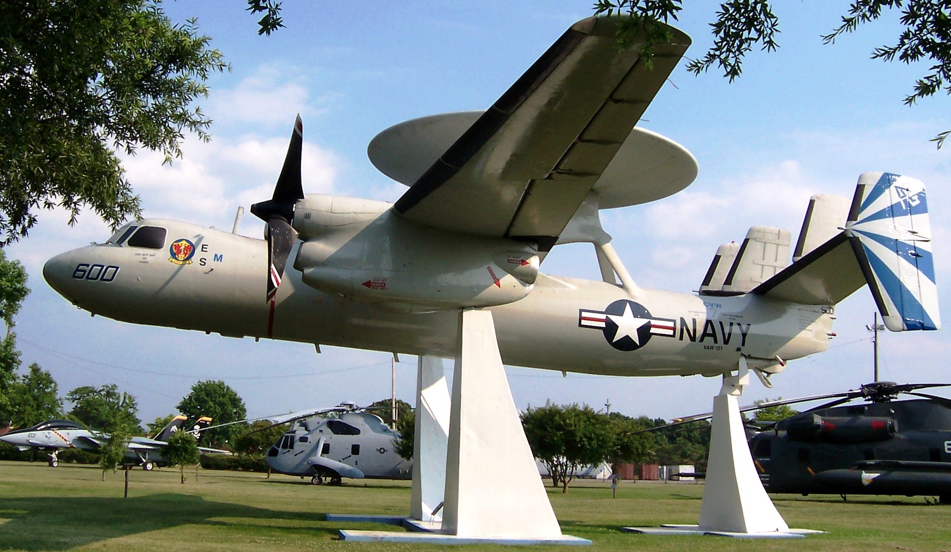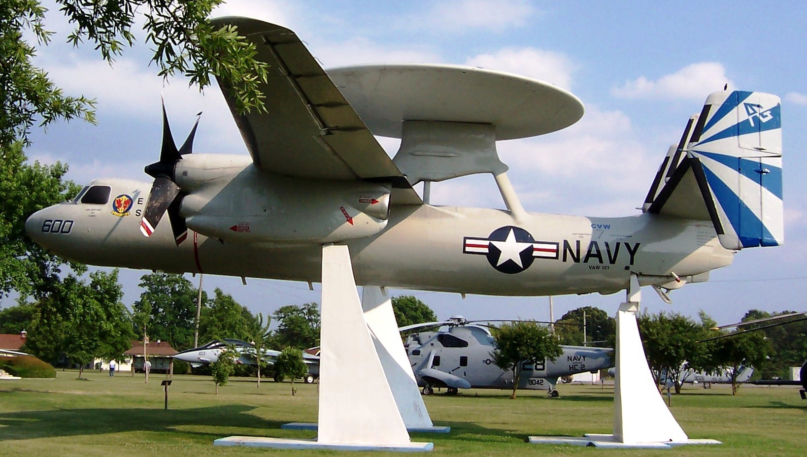 Grumman E-2B Hawkeye (BuNo. 150541), AJ-600, C/N 21, mounted on pylons.  NAS Norfolk Memorial Park.