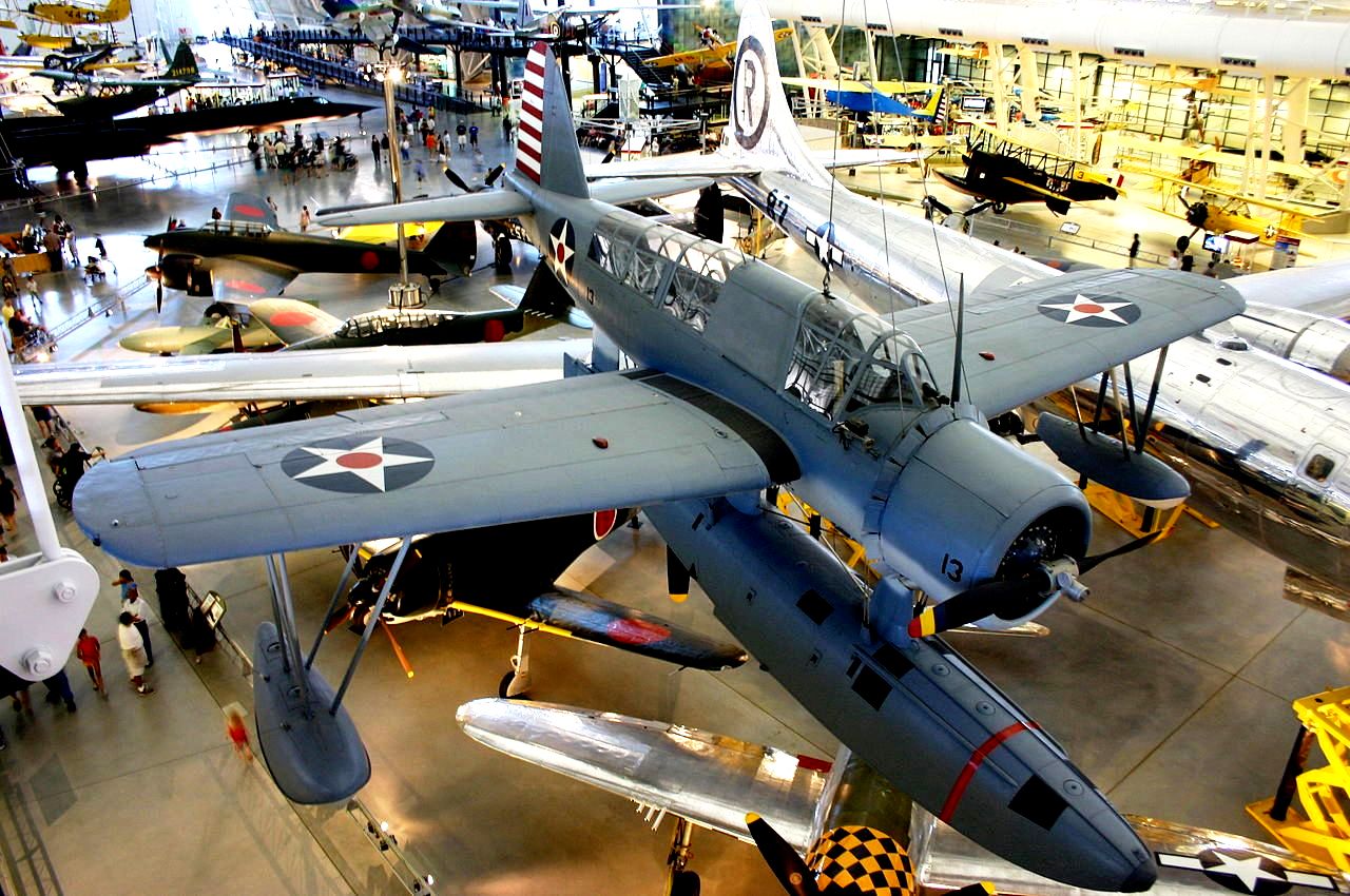 Vought-Sikorsky OS2U-3 Kingfisher (BuNo. 5909), served on the USS Indiana, May 1942 to Dec 1944.  This aircraft is preserved in the National Air and Space Museum (NASM), Steven F. Udvar-Hazy Center, Washington Dulles International Airport, Chantilly, Virginia. Kingfisher (Serial No. 5909), was on loan from the NASM and placed on display on the USS Massachusetts for many years (1960s to 1980s) until it was returned to the NASM.
