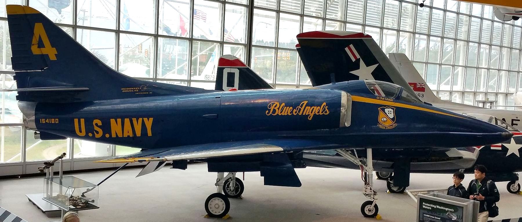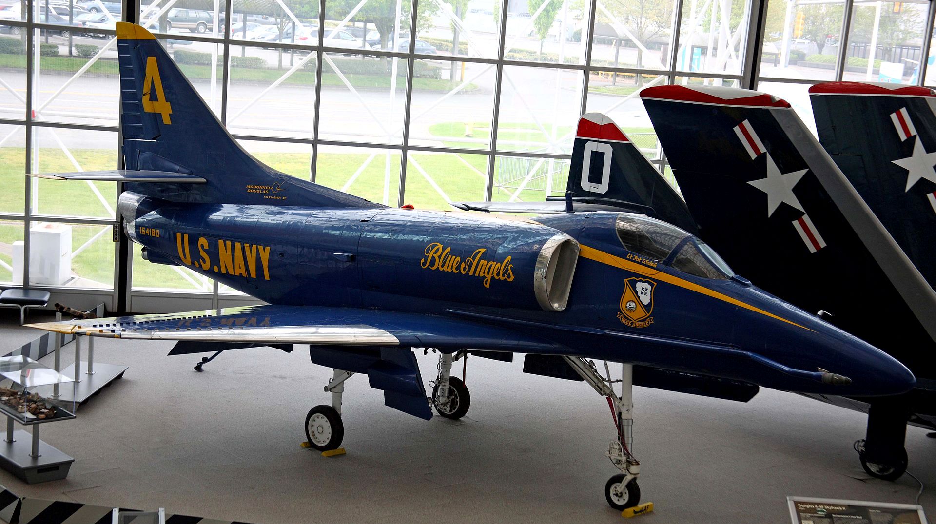 Douglas A-4F Skyhawk II (BuNo. 154180), 4, C/N 13637, Blue Angels colours. 1996. On loan from the NMNA.