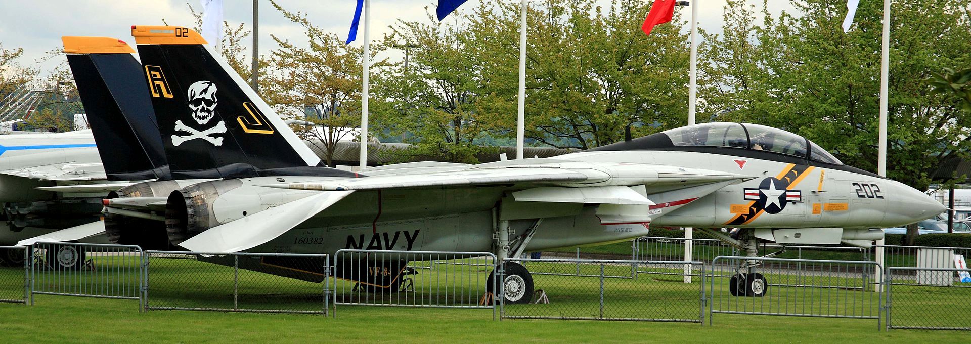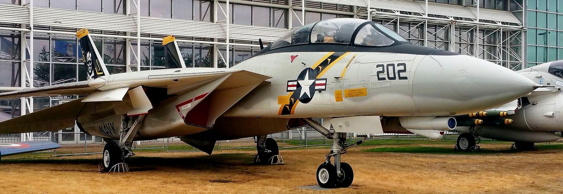 Grumman F-14A Tomcat (BuNo. 160382), C/N 238, AJ-202, on loan from the NMNA. In front of the museum.