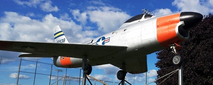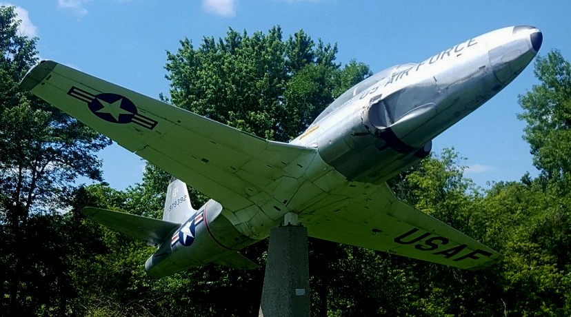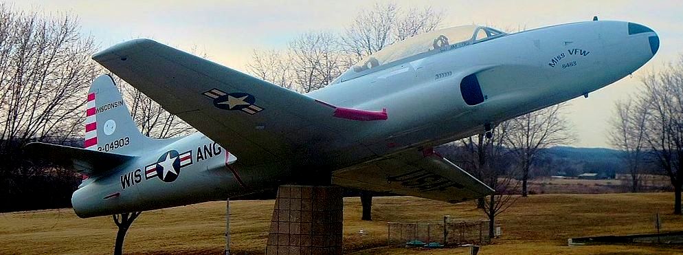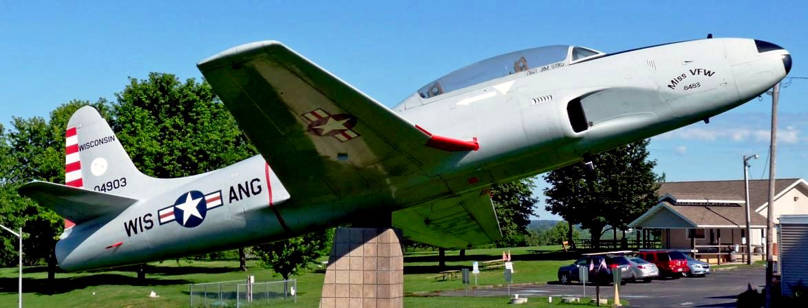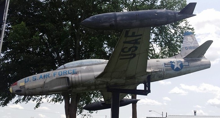 Lockheed T-33 Shooting Star (Serial No. 979392), mounted on a pylon,  Veterans of Foreign Wars Post 9392.