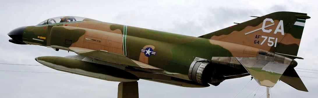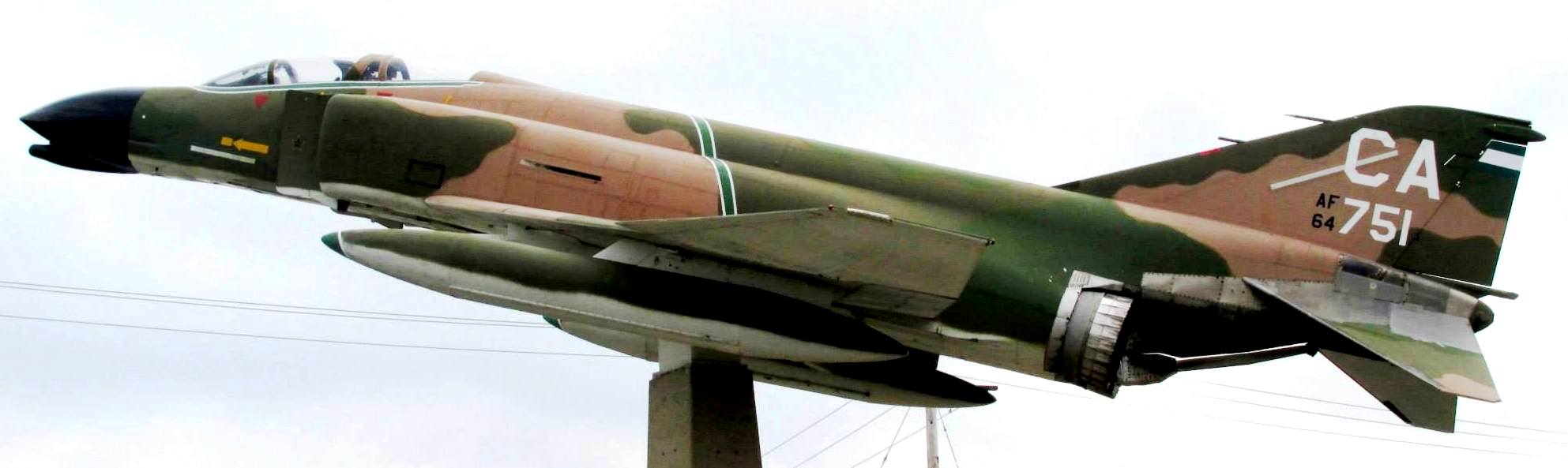 McDonnell F-4C Phantom II (Serial No. 63-7704), C/N 848, painted as (Serial No. 64-0751), CA, in tribute to Medal of Honor recipient Capt Lance Sijan, mounted on a concrete pylon as an airport gate guard.