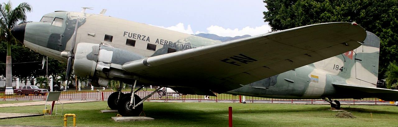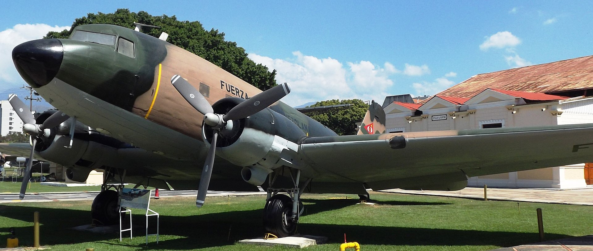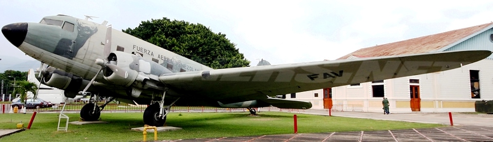 Douglas C-47 Skytrain, USAAF (Serial No. 42-92571), delivered 22 Jan 1944.  Royal Air Force (Serial No. KG377), then to Silver City AW as G-AJAV, General Electric as N19E, Radio Corp of America as N40G, Orinoco Mining as YV-P-EPO, RG Gruber as YV-T-RTC. Preserved at the Museo Aeronáutico Fuerza Aerea Venezolana (FAV).