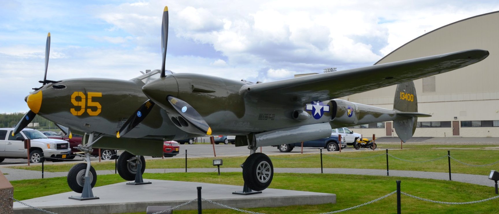 Lockheed P-38G Lightning (Serial No. 42-13400).  This aircraft crash landed on Attu Island in 1945.  It was recovered and restored in 1999. (Mike Kaehler Photo)