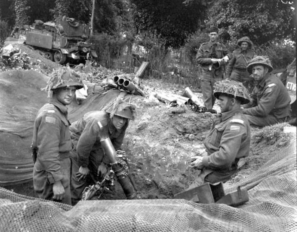 3-inch Mortar, Support Coy, The Regina Rifles, Bretteville-Orgueilleuse, France, 9 June 1944.