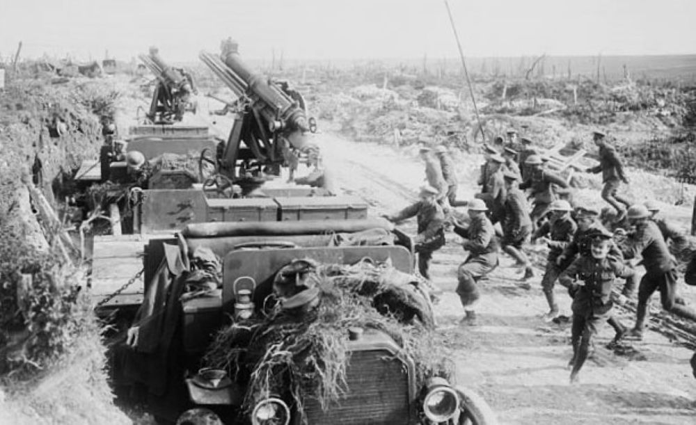 Canadian 8-inch Breechloading Mk. VIII Howitzer firing into Lens, France, Jan 1918.