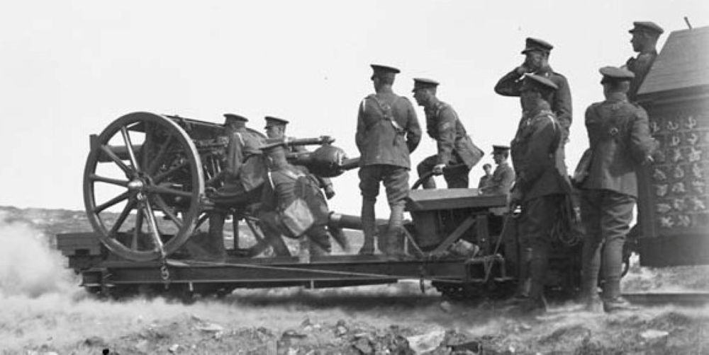 13-pounder 9-cwt QF Anti-Aircraft Gun in action, Oct 1916.