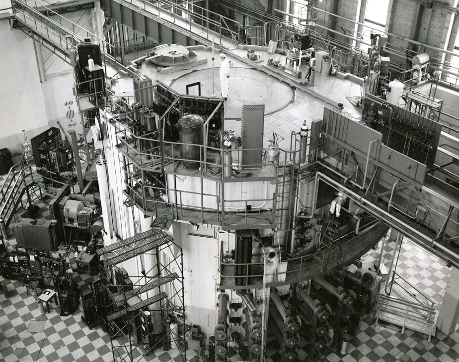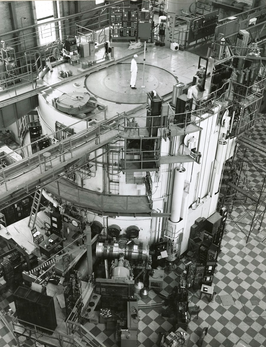 Sample being removed from the self-serve unit of the N.R.X. Reactor at Atomic Energy of Canada Ltd. in Chalk River, Ontario, March 1955.