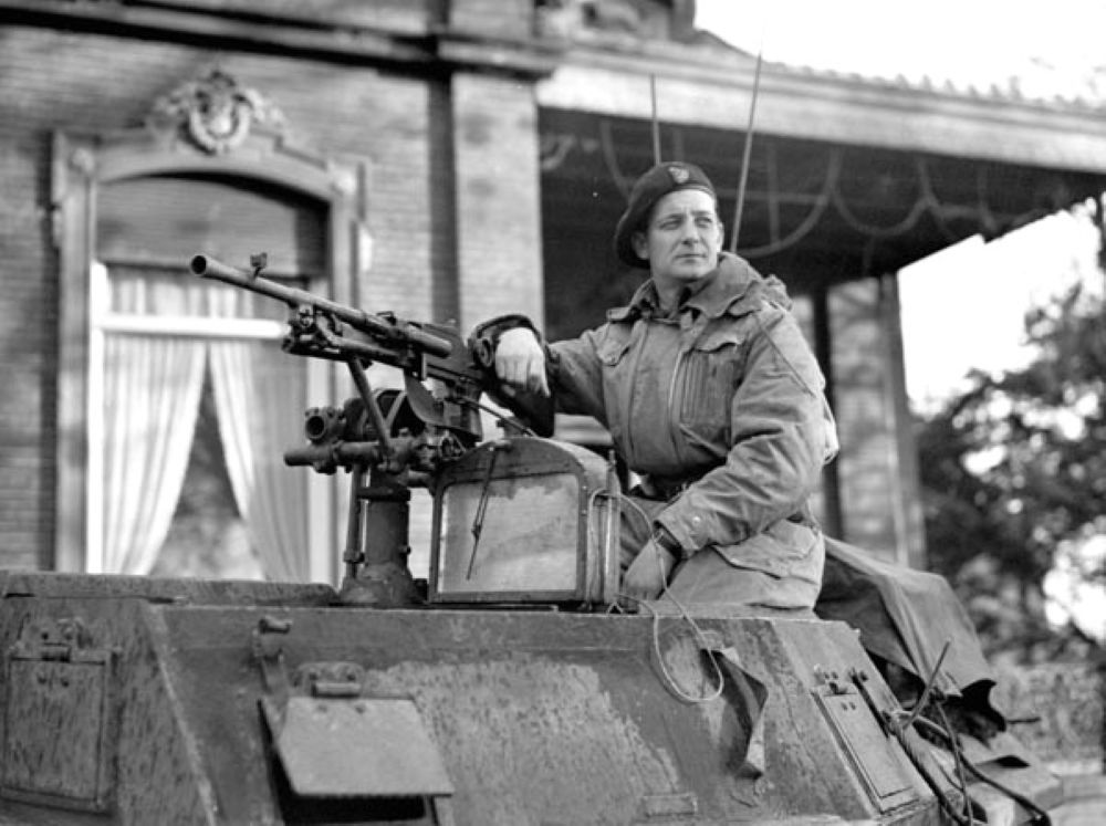 Lieutenant-Colonel David V Currie in his Humber armoured recconnaissance Car, near Bergen-op-Zoom, the Netherlands, Oct 1944.