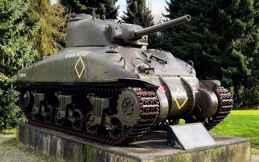 Tank, Medium, M4A1, Cruiser, Grizzly 1, DND, Montreal Locomotive Works, (75-mm gun), “Robin Hood”, Sherwood Rangers Monument, Groesbeek, Netherlands.