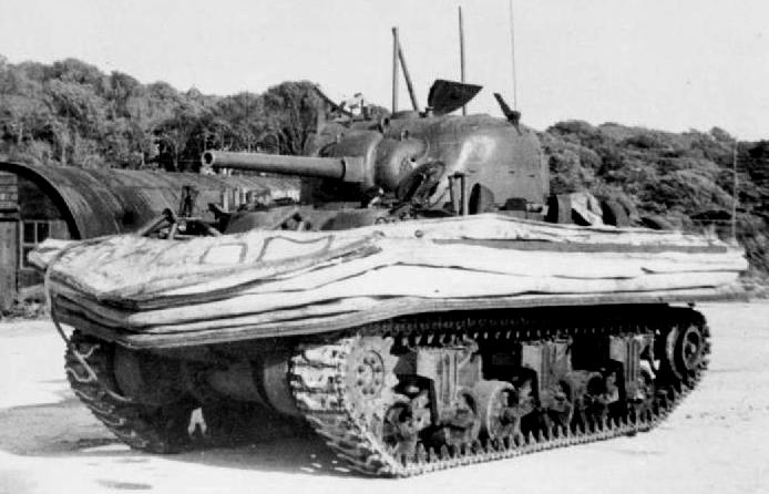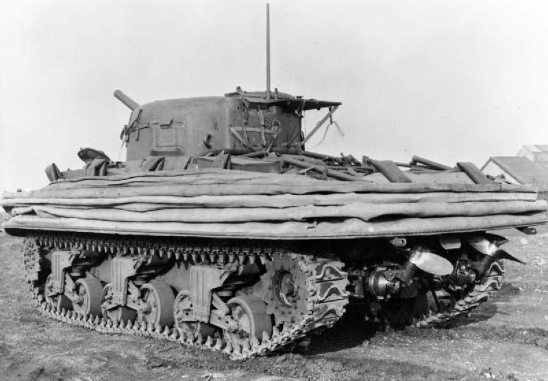 M4A4 Sherman Duplex Drive with screen up, front view. 1944. (IWM Photo MH 3661)