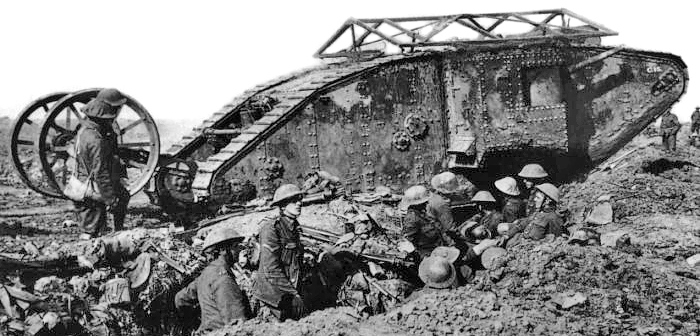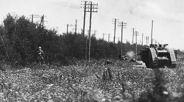 British Tank in action, July 1917. (Library and Archives Canada Photo, MIKAN No. 3521956)