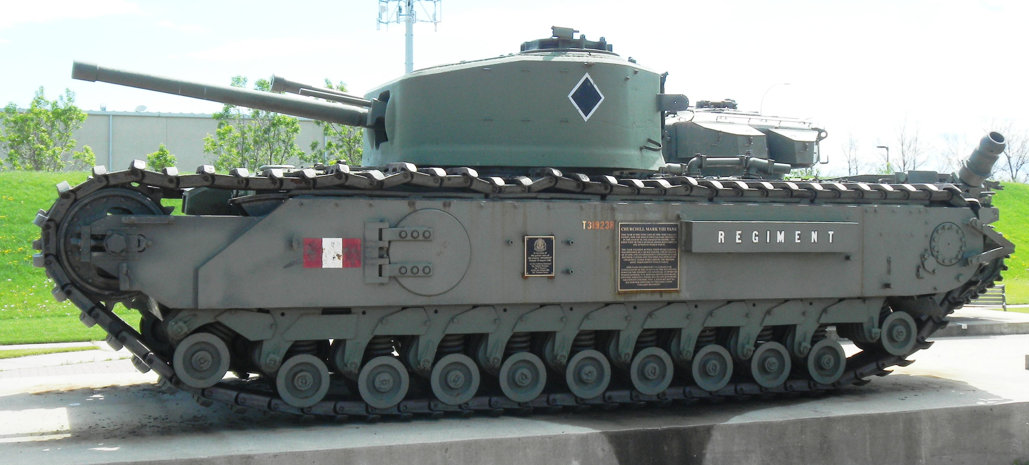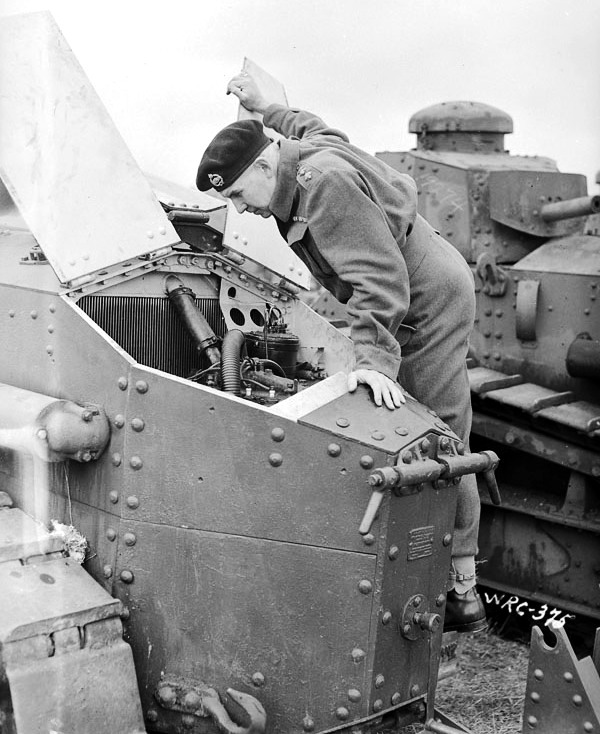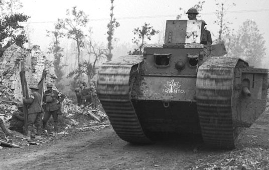 On 15 September 1916, seven British tanks attached to Brutinel‘s Canadian Motor Machine Gun Brigade supported the Canadian attack on Courcellette, France during the battle of the Somme. British tanks also supported the Canadian Corps during the 8 August 1918 Amiens offensive.[6]