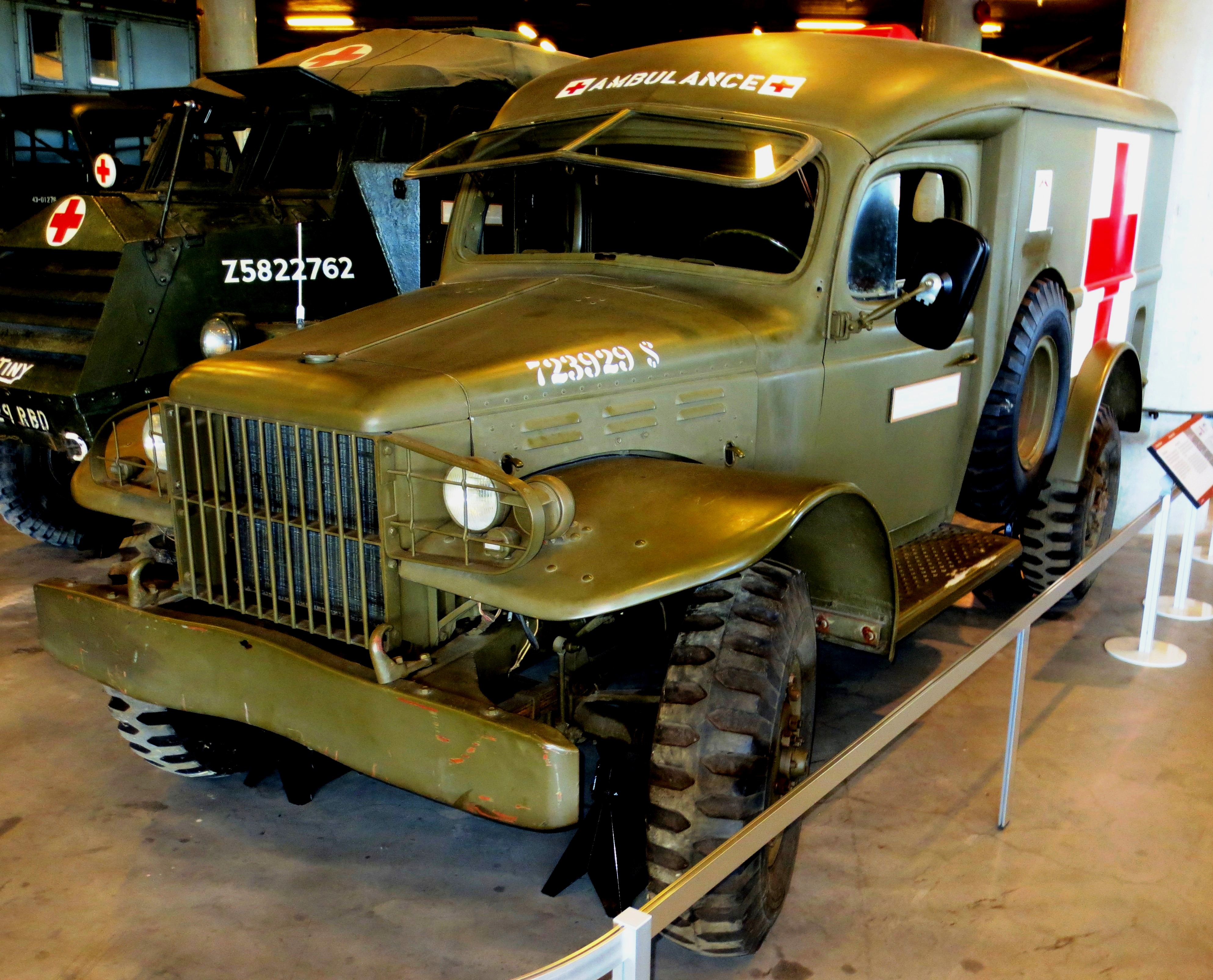 American Dodge WC-18 Ambulance (Serial No. T23929S). Late in 1940, Dodge began to produce trucks to a military pattern. These were based on their civilian models, but had redesigned running gear and were constructed using heavier gauge sheet metal. The letters WC and a numerical suffix (for example, WC-18) designated the particular combination of engine, winch and body style. The various models included a command car, ambulance, weapons carrier, pickup, and panel trucks. The CWM artefact is the 4×4 WC-18 ambulance (without winch). Some of these vehicles were delivered to the British under the Lend-Lease program, and were in action before the United States entered the Second World War. It was widely used by the American army for many years. CWM 19970113-009.