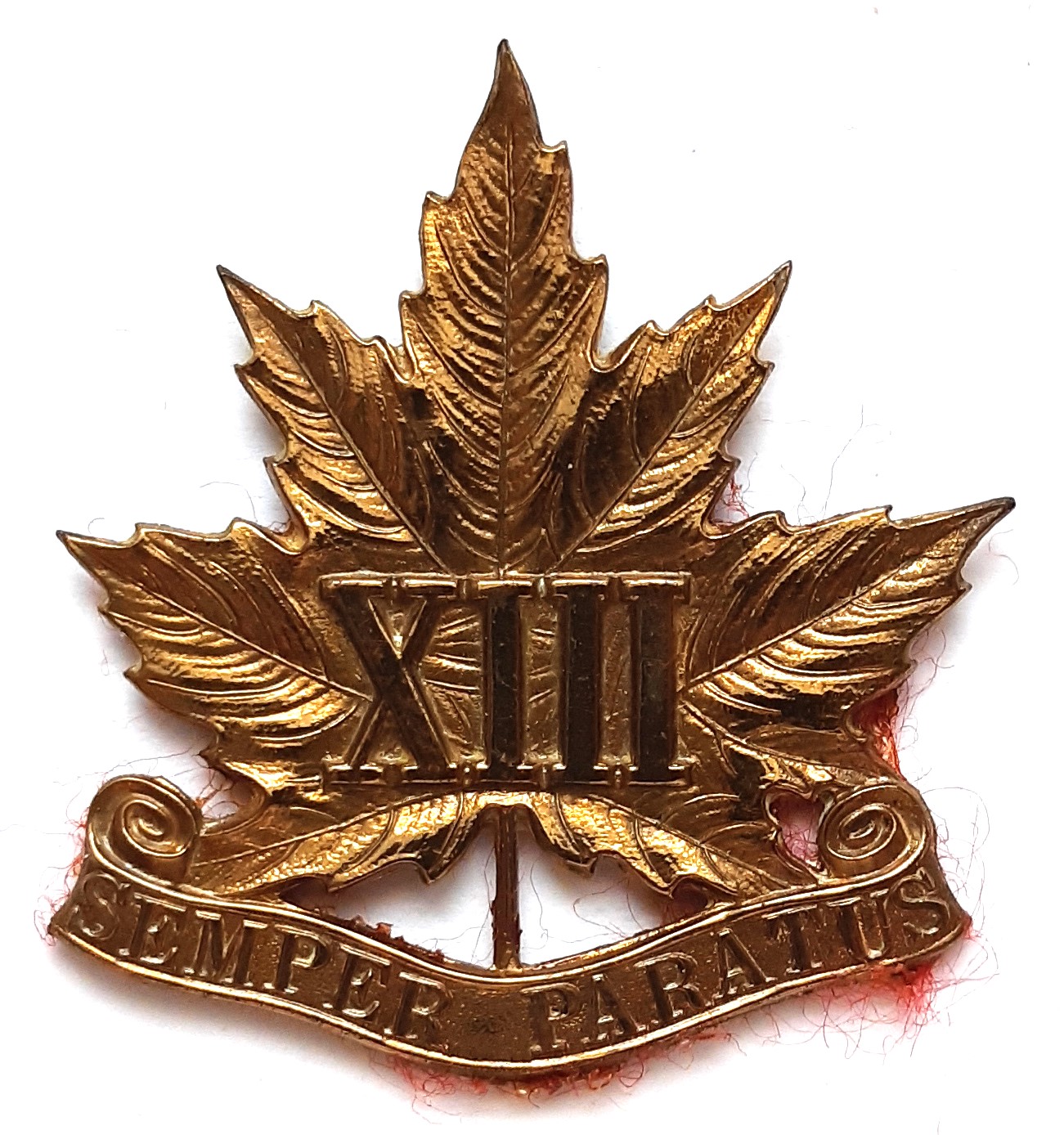 The 12e Régiment Blindé du Canada originated on 24 March 1871 and incorporates both Regular and Reserve Force regiments. The 12e Régiment blindé du Canada originated in Trois-Rivières, Quebec on 24 March 1871, when the ‘Three Rivers Provisional Battalion of Infantry’ was authorized to be formed. It was redesignated: ’86th “Three Rivers” Battalion of Infantry’ on 4 June 1880; ’86th Three Rivers Regiment’ on 8 May 1900; ‘The Three Rivers Regiment’ on 29 March 1920; ‘The Three Rivers Regiment (Tank)’ on 15 December 1936; ‘2nd Regiment, The Three Rivers Regiment (Tank)’ on 13 August 1940;  ’12th (Reserve) Army Tank Battalion, (The Three Rivers Regiment (Tank))’ on 1 April 1941; and ’12th (Reserve) Army Tank Regiment (The Three Rivers Regiment (Tank))’ on 15 August 1942. The regiment was converted to artillery and redesignated the ’46th Anti-Tank Regiment, RCA (Three Rivers Regiment)’ on 1 April 1946. The regiment was converted to armour and redesignated the ’24th Armoured Regiment (Three Rivers Regiment)’ on 19 June 1947. It was redesignated: ‘Le Régiment de Trois-Rivières (24th Armoured Regiment)’ on 4 February 1949; ‘Le Régiment de Trois-Rivières (RCAC)’ on 19 May 1958; and ’12e Régiment blindé du Canada’ on 2 May 1968.