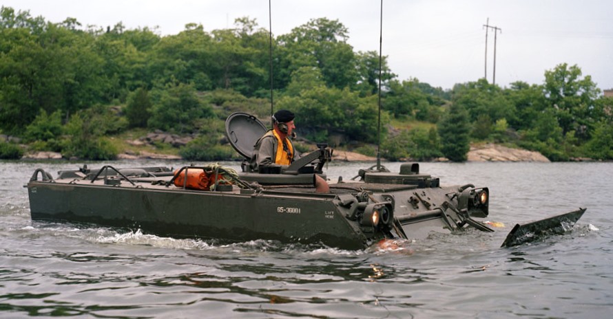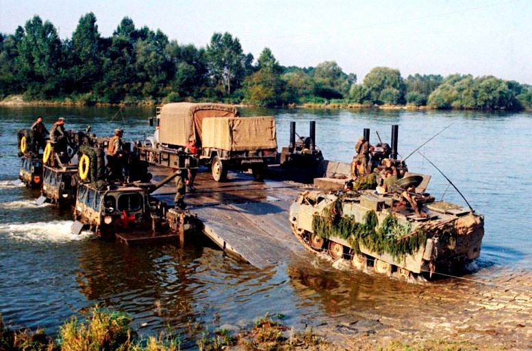 M113 C & R Lynx boarding a barge on exercise, Bavaria, Germany, 1964.