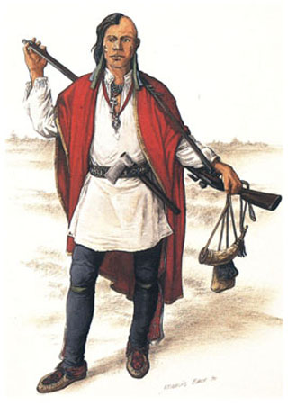 War was central to the way of life of many First Nation cultures, and a persistent reality in all regions although it waxed in intensity, frequency and decisiveness. The causes were complex and often interrelated, springing from both individual and collective motivations and needs. At a personal level, young males often had strong incentives to participate in military operations, as brave exploits were a source of great prestige in most Aboriginal cultures. According to one Jesuit account from the 18th Century, ‘The only way to attract respect and public veneration among the Illinois is, as among the other Savages, to acquire a reputation as a skilful hunter, and particularly as a good warrior … it is what they call being a true man.’ At a community level, warfare played a multifaceted role, and was waged for different reasons.  Some conflicts were waged for economic and political goals, such as gaining access to resources or territory, exacting tribute from another nation or controlling trade routes.  Revenge was a consistent motivating factor across North America, a factor that could lead to recurrent cycles of violence, often low intensity, which could last generations.  Among the Iroquoian nations in the northeast, ‘mourning wars’ were practiced.  Such conflicts involved raiding with the intent to capture prisoners, who were then adopted by bereaved families to replace family members who had died prematurely due to illness or war.