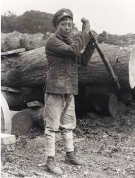 First Nations soldier in the Canadian Forestry Corps during the First World War.