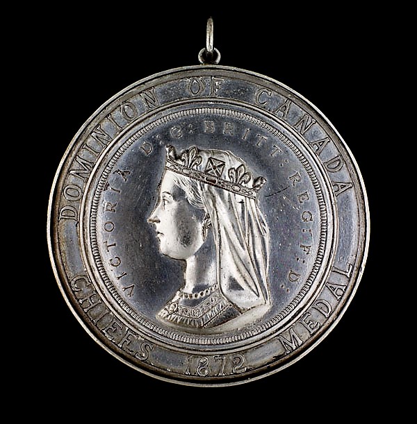 1872 Medal, presented to Dominion of Canada First Nations Chiefs (Northwest Territories), Replacement Medal for first medal to commemorate Treaty numbers 1 and 2 (Queen Victoria)