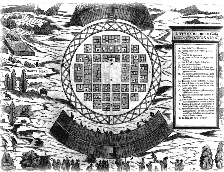 Archaeological evidence confirms the prominent role of warfare in indigenous societies well before the arrival of permanent European settlers.  As early as the year 1000, for example, Huron, Neutral, Petun and Iroquois villages were increasingly fortified by a timber palisade that could be nearly 10 metres in height, sometimes villages built a second or even third ring to protect them against attacks by enemy nations.  Craig Keener has described how these structures became larger and more elaborate through to the 1500s, with logs as large as 24 inches in diameter being used to construct the multi-layered defences, an enormous investment in communal labour that the villagers would not have made had it not been deemed necessary.  Sieges and assaults on such fortified villages therefore must have occurred before Europeans arrived, and were certainly evident in the 17th and 18th Centuries.  War also fuelled the development of highly complex political systems among these Iroquoian nations.  The great confederacies, such as the Iroquois Confederation of Five Nations and the Huron Confederacy, probably created in the late 16th Century, grew out of their members’ desire to stem the fratricidal wars that had been ravaging their societies for hundreds of years.  They were organized around the Confederacy Council, which ruled on inter-tribal disputes in order to settle differences without bloodshed.  The Councils also discussed matters of foreign policy, such as the organization of military expeditions and the creation of alliances.