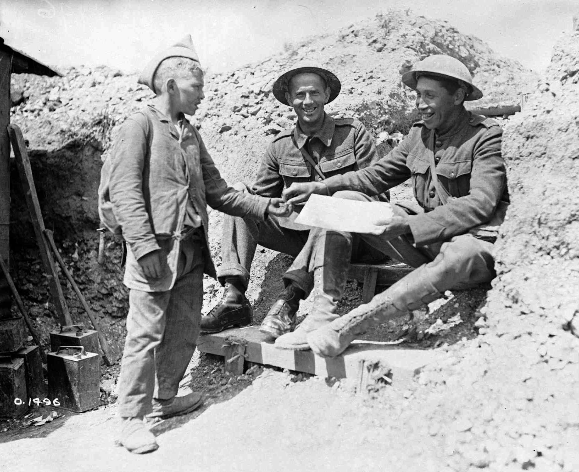 More than 4000 Indigenous men volunteered for overseas service with the(CEF) in the First World War. Modern historians and other researchers have show that a few thousand more Indigenous soldiers volunteered without self-identifying as Indigenous on their recruitment forms. Historian Timothy Winegard has revealed that recruitment and volunteerism of Indigenous soldiers breaks down into three phases. In the first phase, from August 1914 to December 1915, the Army “unofficially” accepted Indigenous soldiers, particularly Status Indians (en with legal Indian status). In other words, they allowed them to enlist but did not actively recruit them. In the second phase, from December 1915 to December 1916, the Canadian government and the Department of Indian Affairs relaxed restrictions against Indigenous volunteers as casualties grew for the CEF after deadly battles like the Second Battle of Ypres (1915) and the Battle of the Somme (1916). The third phase took place from 1917 to the end of the war. In the third phase, Indigenous volunteers were officially encouraged as voluntary enlistment dried up across Canada and Prime Minister Robert Borden decided to institute  (mandatory military service). The Military Service Act (MSA) of August 1917, which declared conscription of men aged 20-45, initially included all Indigenous men (except for Inuit men), regardless of their legal Indian status. Although First Nations and other Indigenous men were exempted from the MSA in January 1918, many more continued to volunteer through the end of the war. It is estimated that more than 1200 Indigenous soldiers were killed or wounded in the First World War (https://www.thecanadianencyclopedia.ca/en/article/first-world-war-wwi)