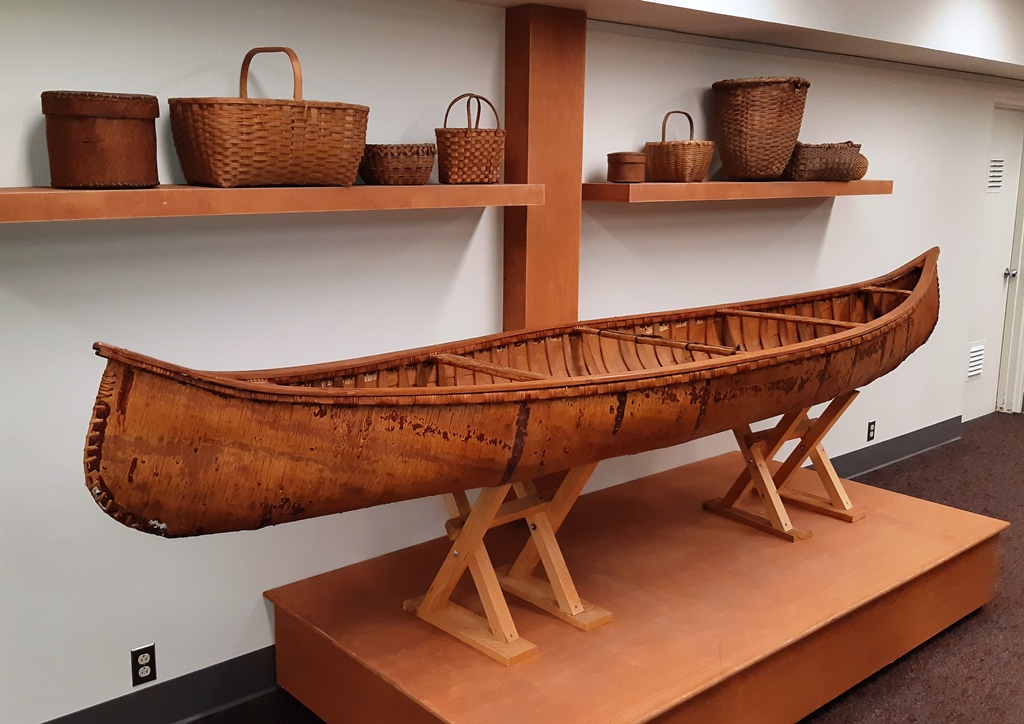 First Nations birch bark canoe, courtesy of King’s Landing via Evelyn Fidler, on display in the New Brunswick Military History Museum.