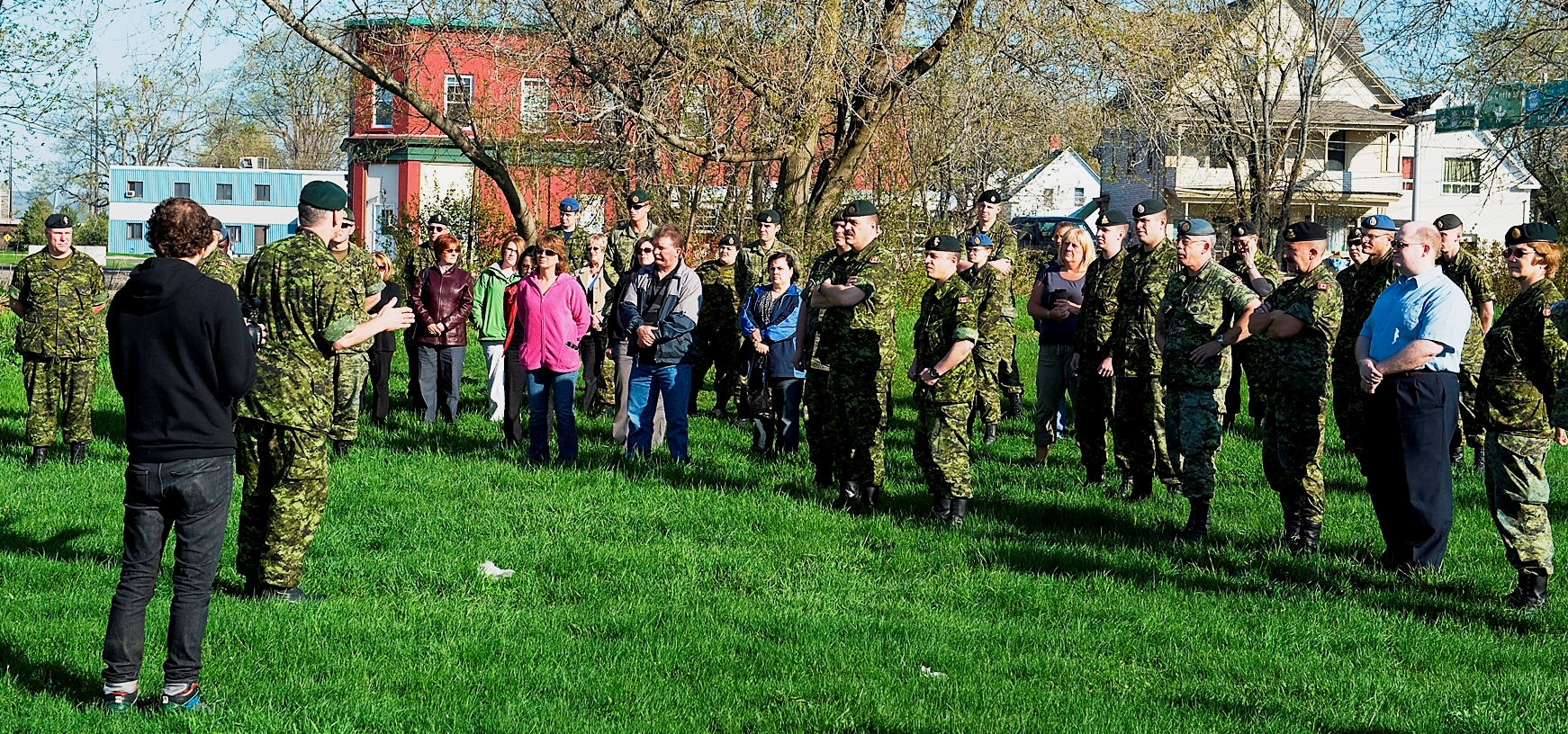 Aboriginal Awareness Day, Author briefing members of 3 ASG (now 5 CDSB) Gagetown, attending the sunrise ceremony at the site of the original St. Mary’s Reserved on the Saint John River, 14 May 2009.