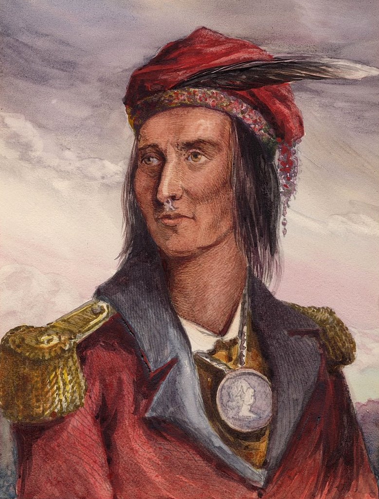 Chief Tecumseh.  A portrait reproduced by Nenson John Lossing from a pencil sketch by French trader Pierre Le Dru at Vincennes, taken from life about 1808.