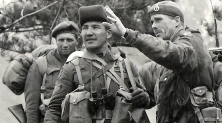 Sergeant Tommy Prince (R), M.M., 1st Canadian Parachute Battalion.