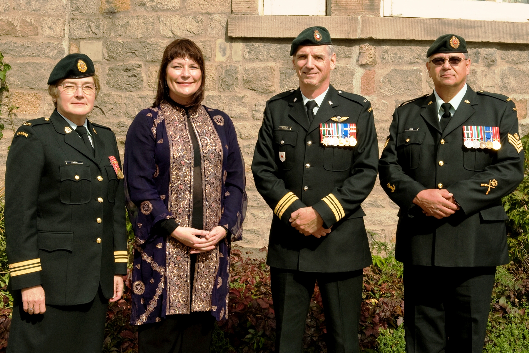 Aboriginal Awareness Group, Capt Petra Comeau, Shannon Johnson, Maj Hal Skaarup, Sgt CW Paul (St. Mary’s First Nation), Lt Gov Nicholas Graydon (former Captain in the Canadian Forces, Tobique First Nation) induction day, Fredericton 2009.