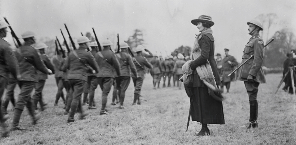 Princess Patricia was named Colonel-in-Chief to the PPCLI on 22 February 1918. She is shown here reviewing the PPCLI at Bramshott before her marriage in 1919. Princess Patricia personally designed the badge and colours for the regiment to take overseas to France. She was succeeded in 1974 by her cousin and goddaughter Patricia (the Rt. Hon. Lady Brabourne), who became the Countess Mountbatten of Burma, who asked that the men and women of her regiment discount her titles and refer to her in honour of her predecessor as Lady Patricia.