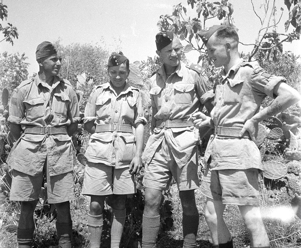 Award winners in Princess Patricia’s Canadian Light Infantry during action in Sicily:(L-R)Private Wilfred Reilly, Major R.C. Coleman, Lieutenant Rex Carey, & Corporal Bob Middleton, 17 August 1943.