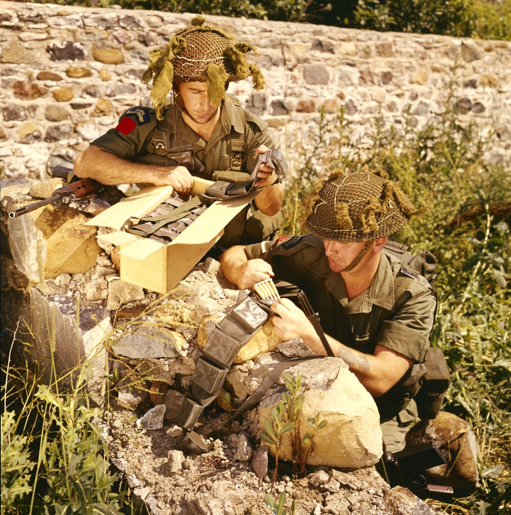 RCR soldiers unloading ammunition bandoliers, c1960s.