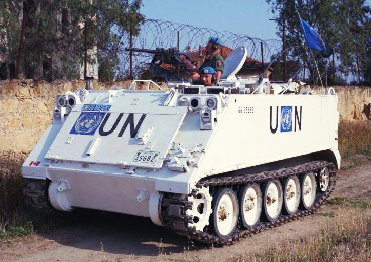 Canadian M113 APC in UN markings on patrol in Cyprus.